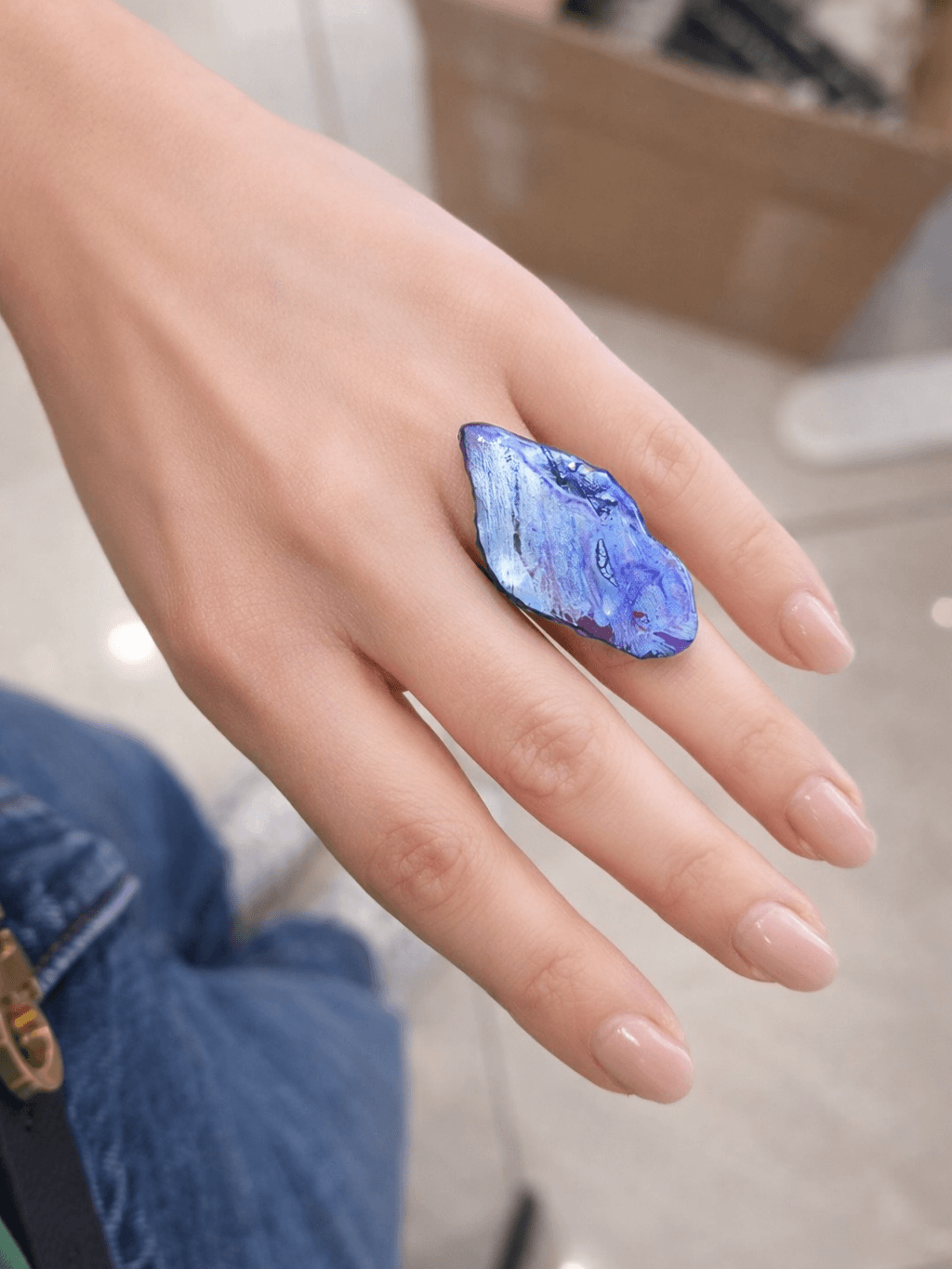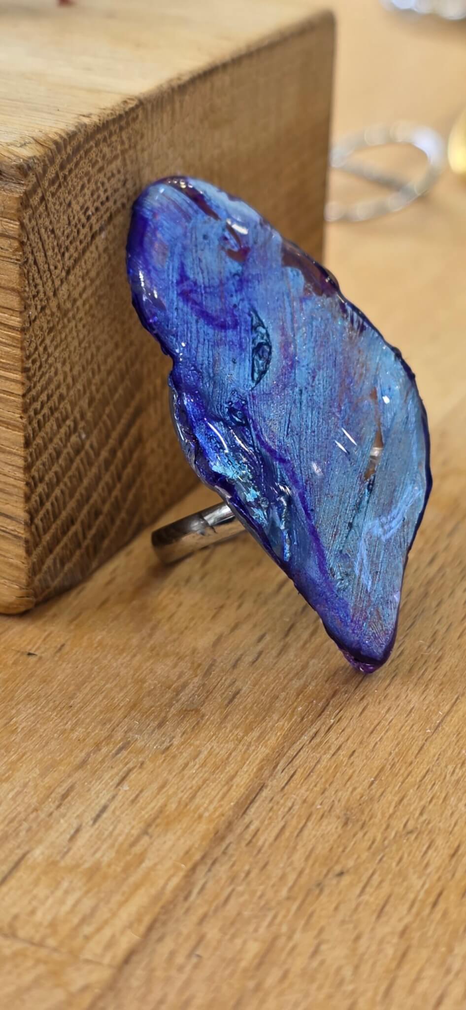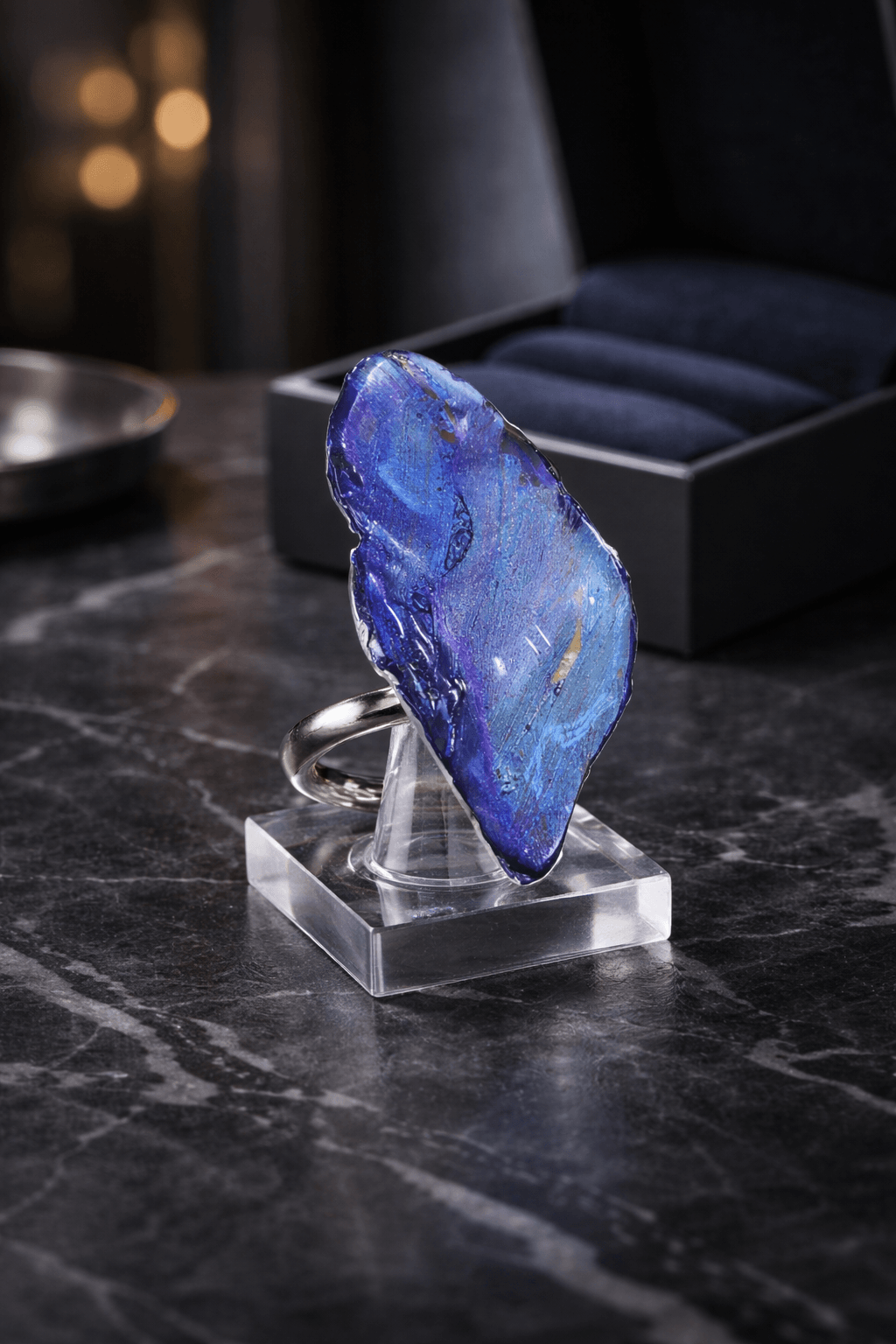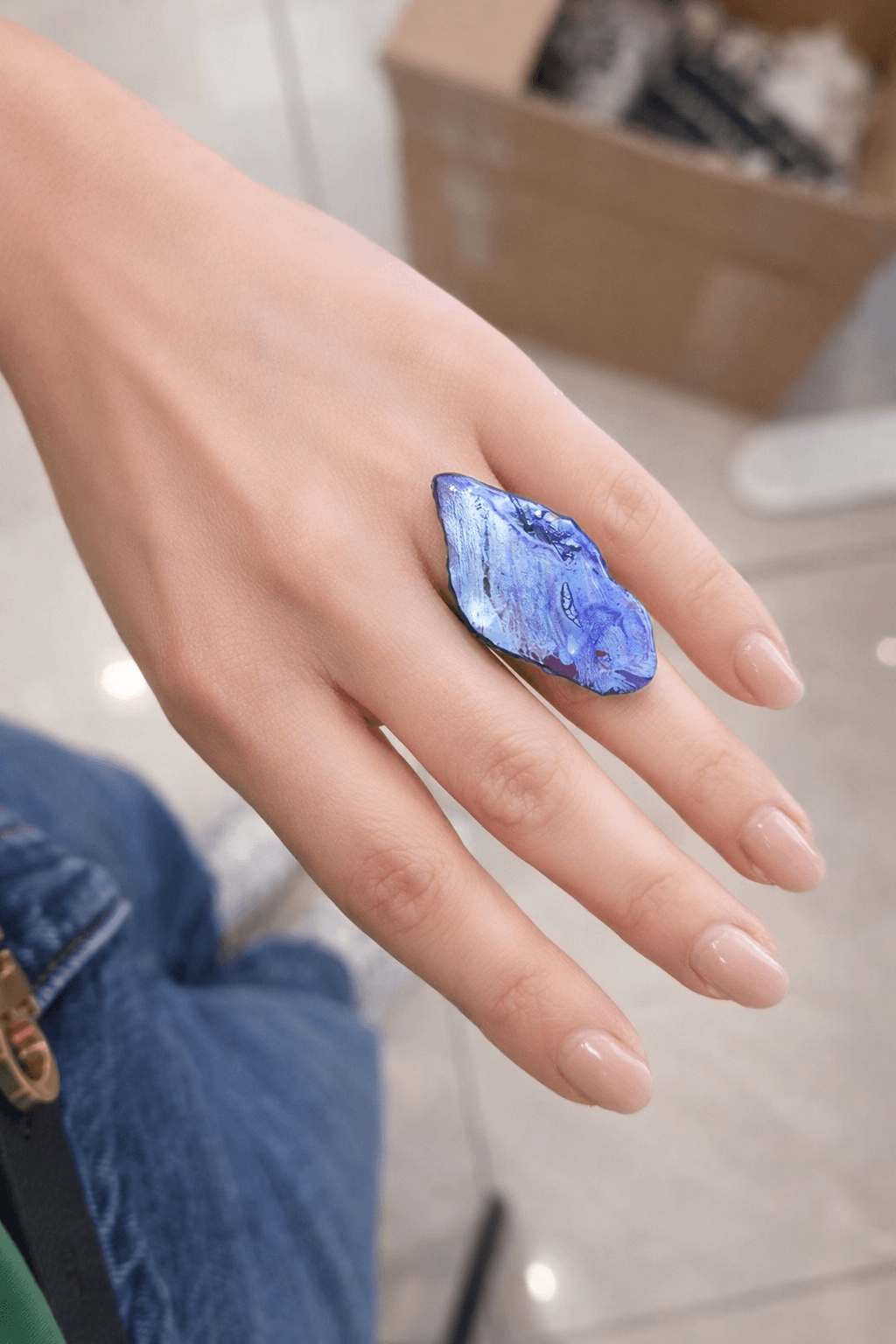 Ανακαλύψτε το Deep Blue Statement Ring, ένα μοναδικό χειροποίητο δαχτυλίδι από καλλιτεχνική ρητίνη που συνδυάζει την υψηλή αισθητική με την απόλυτη άνεση. Σχεδιασμένο για να εντυπωσιάζει, αυτό το καλλιτεχνικό κόσμημα ξεχωρίζει για το βαθύ μπλε εφέ υγρού γυαλιού και το sculptural σχήμα του.