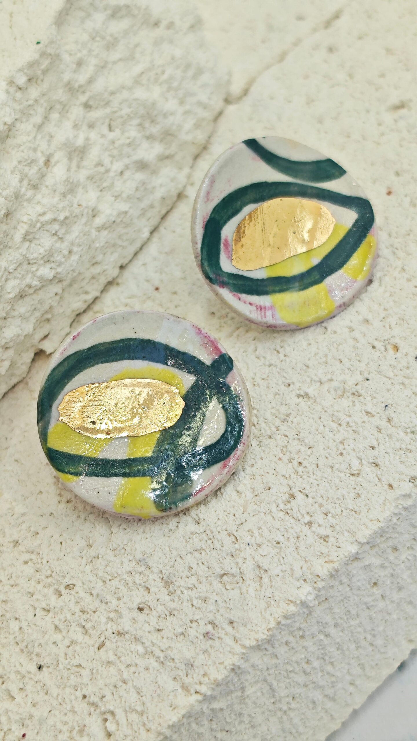 Φτιαγμένα με πηλό, ψημένα στους 1200°C και περασμένα με λεπτομέρεια υγρού χρυσού (8%), το κάθε ζευγάρι είναι μοναδικό. Όπως κι εσύ.
